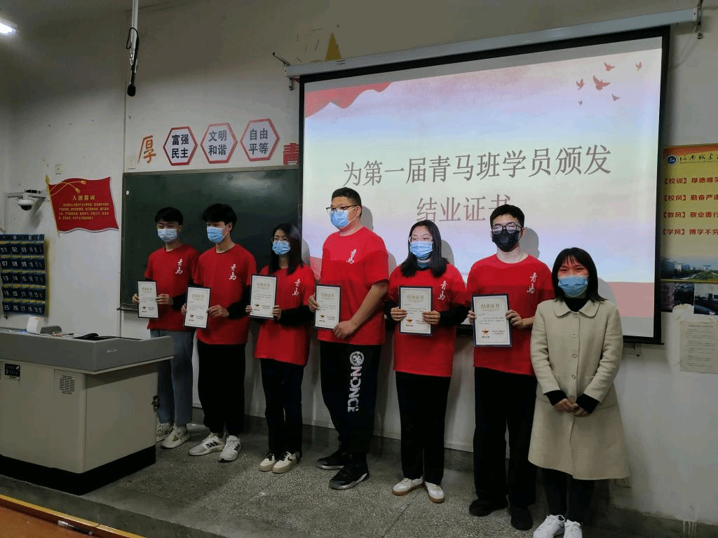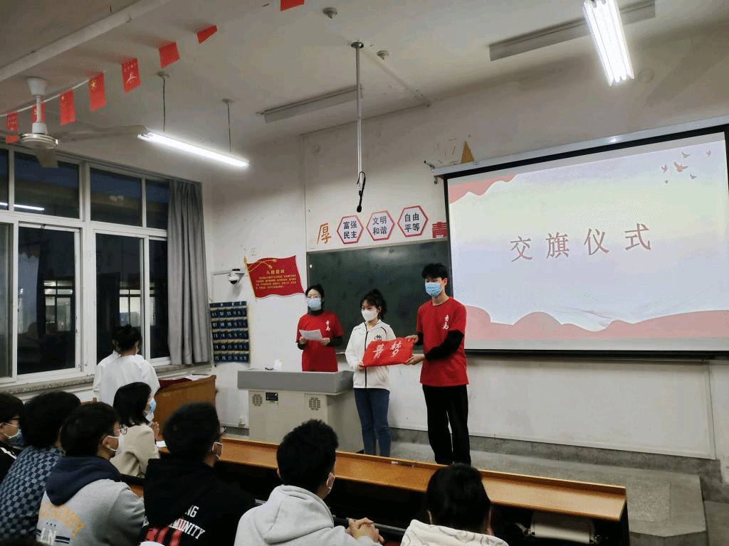 活动伊始,第一期青马班团支书与第二期青马班团支书进行交旗仪式,并由团学负责人杨亚娟老师为第一期青马班优秀学员颁发结业证书。随后,党祎博同学代表第一期青马班发言,并对第二期青马班学员给予真诚鼓励。最后,团学负责人杨亚娟老师作总结讲话。杨老师提出了对新一期青马班学员的期望,她希望大家能够以青马班培训为契机,争做新时代堪当民族复兴大任的新青年!