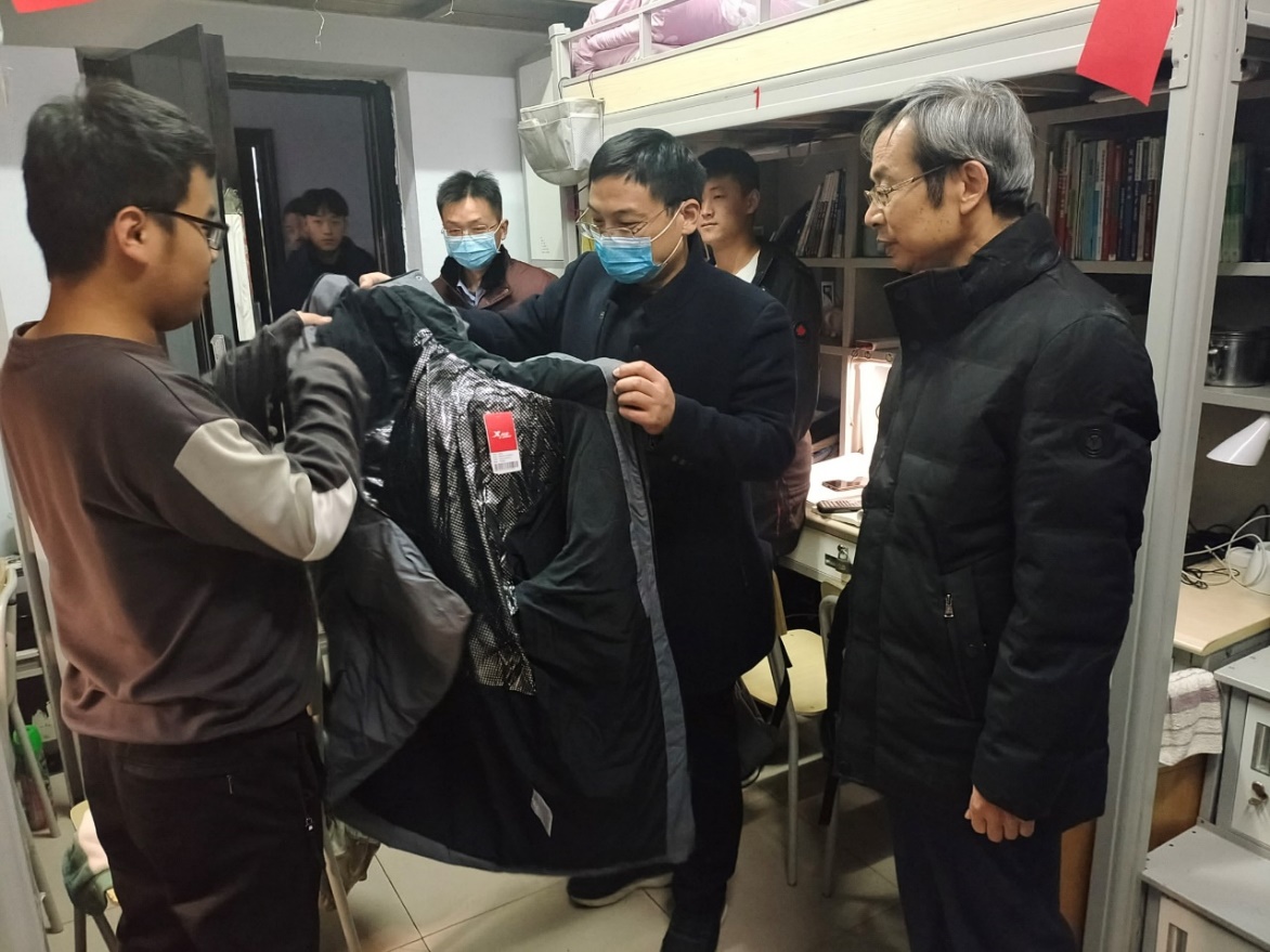 杨风岭深入员工宿舍,仔细询问同学们家庭情况,在校的学习生活情况。他表示,公司一直很关注经济困难员工的学习生活,会尽最大可能关爱和帮助同学们。在发放棉服的同时,他勉励同学们要树立远大理想,刻苦学习,励志成才,练就过硬本领,用实际行动回报家庭、社会和母校。受资助的同学纷纷表示一定不辜负校领导的嘱托和期望,定会努力践行“厚德唯实,博学慎思”的校训精神,成为一个有用之人,将来回报社会、回报母校。