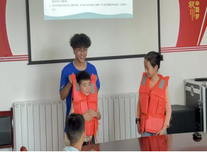 活动现场,实践团成员以水盆模拟溺水场景,通过沉浸式体验展现溺水瞬间的生理危机,引发孩子们对“水域风险无小事”的深刻警醒。随后,成员们以动态PPT演示,重点讲解“大人陪同、穿戴护具、掌握泳技”三大防溺水核心要点,并现场教学正规救生衣穿戴步骤与简易应急救生装置制作方法。孩子们分组动手实操,在充气枕绑扎、矿泉水瓶浮力实验中热情参与,在“理论讲解—示范教学—分组实操”的闭环中,将安全知识转化为可操作的实践能力。针对紧急情况处置,成员们用情景模拟方式演示落水自救的“仰漂待援法”,以及利用长杆、绳索实施科学他救的规范流程,强调“不盲目下水施救”的黄金原则,此举不仅传递了科学避险理念,还体现了对生命安全的细致守护。