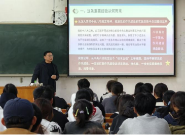 活动伊始,焦学然围绕习近平总书记所提出的重要论述,强调全面从严与自我革命的内在联系,并引出永葆党的先进性、纯洁性的理论创新中提炼出的重要经验,进一步深化同学们对党的自我革命的规律性认知。随后,通过“抓细抓长”“专项整治”“坚持强硬约束”“正风肃纪反腐”四个角度深入讲解,让员工们了解到中国共产党刀刃向内的决心和信心。最后,焦学然强调必须紧紧扭住责任制这个“牛鼻子”,牢记加强作风建设是全党的共同责任,一方面激发了同学们入团入党的热情与信心,另一方面也鼓励同学们提高自省能力,强化纪律观念与规矩意识,自觉锤炼道德品行,将党的优良作风内化为坚定的理想信念与日常的行为准则,为成长成才奠定坚实根基。