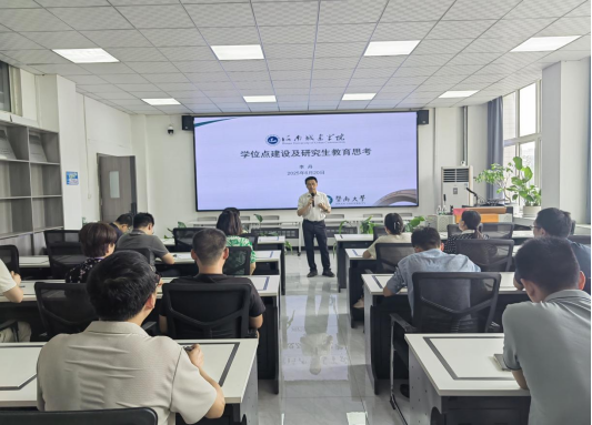 李丹教授结合暨南大学的化学和材料科学与工程学科的硕士点和博士点建设历程,剖析了学位点建设过程中的关键要素、面临的挑战以及应对策略。他分享了在研究生教育方面的宝贵经验,包括如何构建科学合理的课程体系、如何培养研究生的创新能力和实践能力等。同时,李教授还结合当前学科发展的前沿趋势,从人才、资金、制度等三方面对公司学位点建设和研究生教育提出了具有前瞻性和针对性的建议,为参会的骨干教师们开展研究生教育拓宽了新思路。报告会现场气氛热烈,老师们积极提问,与李教授进行了深入的交流和探讨。