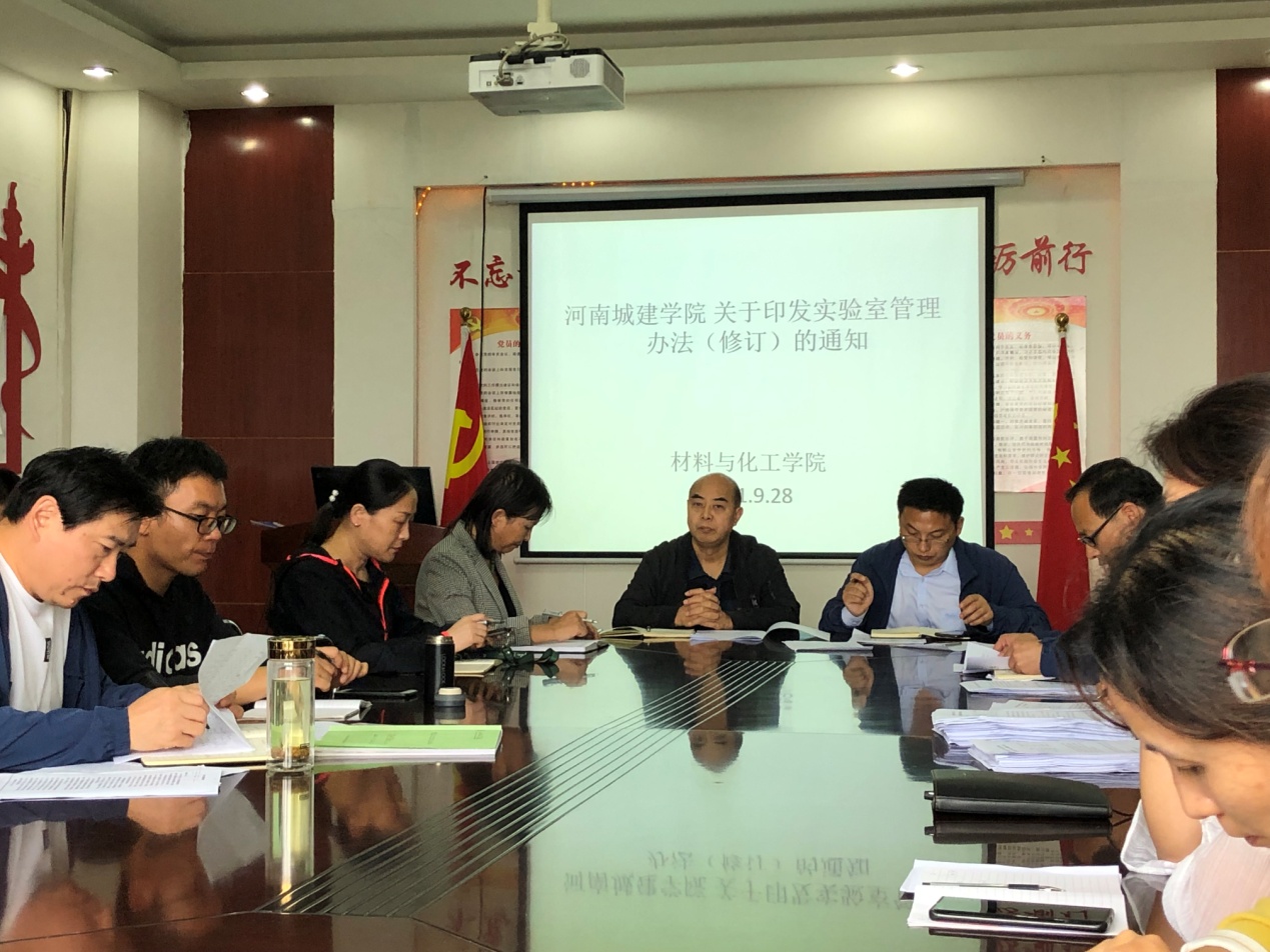 (通讯员:李亚红,审稿:张延兵)9月28日下午,beats365中文官网(简称“材化公司”)在9#C414会议室召开实验室管理办法(修订)文件学习会议,材化公司领导、课题组负责人、实验室管理人员,大型仪器管理人员及其他实验室使用人员参加了会议。
