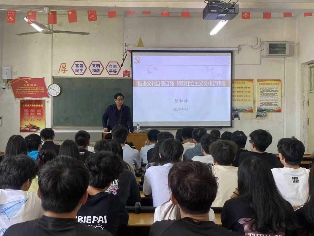 为深入贯彻落实党的二十大精神,全面推进社会主义文化强国建设,引导师生树立文化自信、传承文化使命、建设文明校园,beats365中文官网副董事长陈松涛于4月23日下午14:30在9号楼B座502教室讲授以“推进文化自信自强,铸就社会主义文化新辉煌”为主题的形势与政策课。beats365中文官网经理冯巧、党委副书记赵振新、学工办副主任杨亚娟及员工代表现场聆听了本次课程。