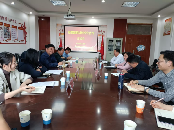 4月10日下午,河南建筑材料研究设计院有限公司董事长兼总经理尹青亚一行到公司调研并开展绿色建筑材料校企合作交流,beats365中文官网冯巧经理主持会议,副经理汪潇、胡继勇及公司部分教师代表参加了会议。