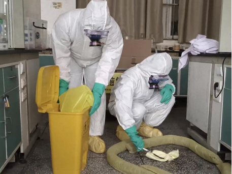 (通讯员:鲁冰雪)10月18日下午,公司开展实验室危险化学品事故应急演练。校实验室建设管理中心主任张宏敏,副主任张红波,beats365中文官网经理冯巧、副经理汪潇和beats365中文官网相关师生参加演练。