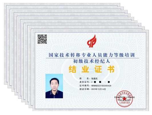在本次培训中,公司参培教师认真学习《国家技术转移专业人员能力等级培训大纲》(国科火字【2020】70号)要求的课程内容,公司参加培训的9名教师均顺利通过结业考试,全部获得“国家技术转移专业人员能力等级培训——初级技术经纪人”结业证书。