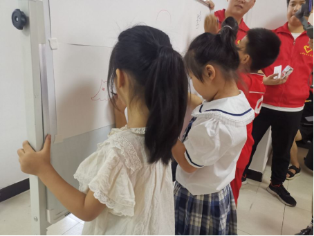 活动中,志愿者带领孩子们一起观看励志短片《杂草的梦想》,借此告诉孩子们无论前路多么坎坷,坚定梦想、拥抱勇气向着目标前进,总会有意想不到的收获。接着,为锻炼孩子的反应能力,培养孩子们对生活的细致观察,志愿者们为孩子们带来了有趣的猜谜语、脑筋急转弯、“你画我猜”小游戏。孩子们发挥想象力与聪明才智,又快又准地说出正确答案。活动现场孩子们笑声不断,纷纷敞开心扉与志愿者建立了真挚友情。