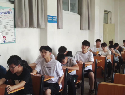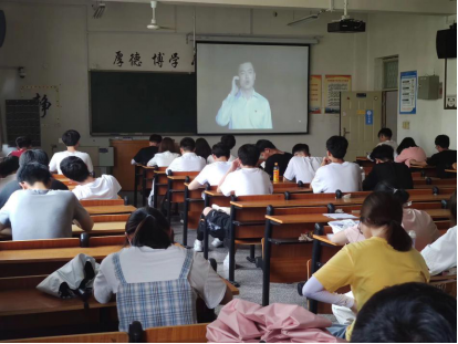 同学们聚精会神观看视频