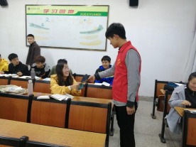 志愿者为同学们发放信封