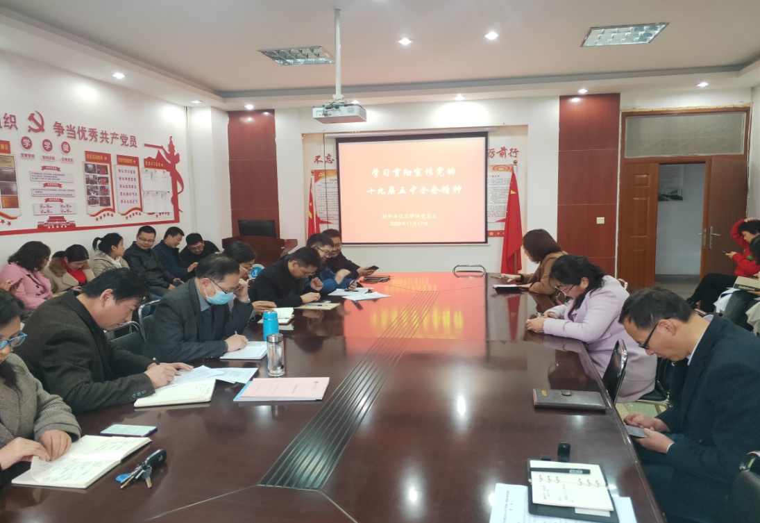 (通讯员:薛明三)11月17日下午,材化公司组织全体教职工学习贯彻党的十九届五中全会精神,到会的62名教师和8名员工代表参加,由公司党总支书记焦学然主持领学。