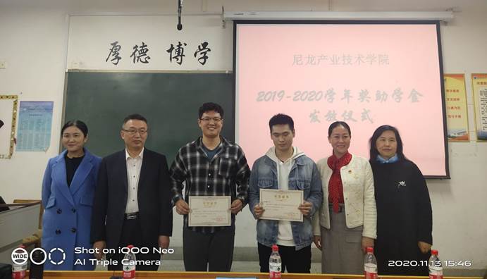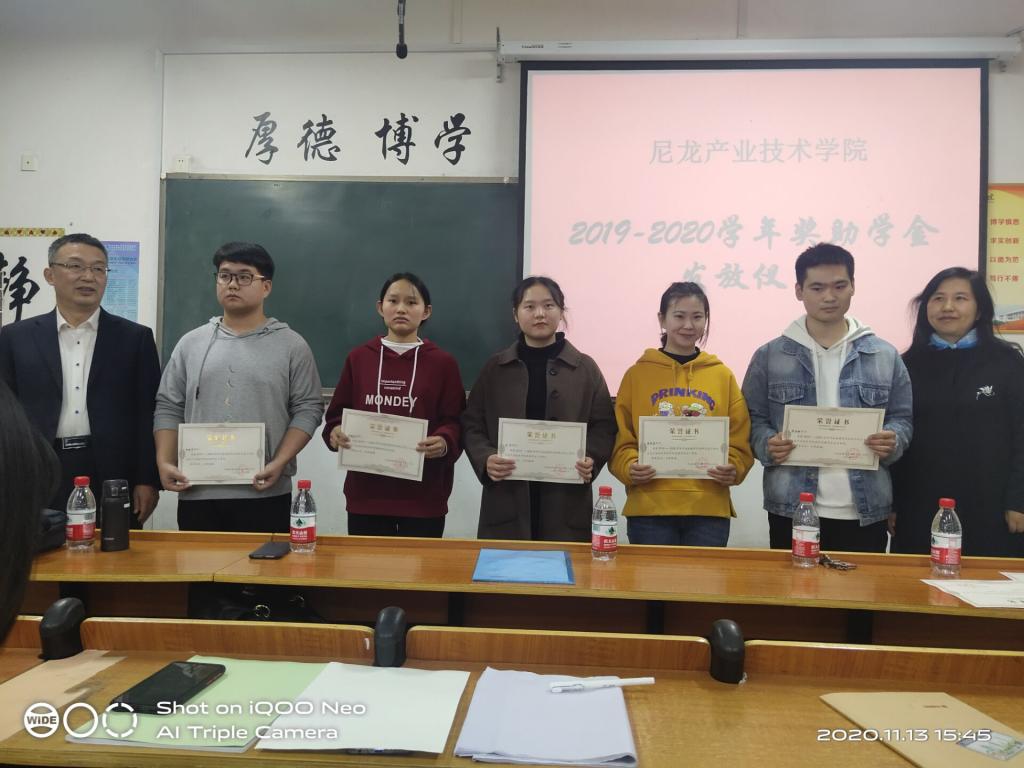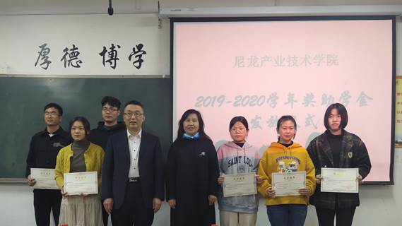 (通讯员:谭延方)11月13日下午15:00第一届尼龙产业技术公司奖助学金颁奖仪式在9号楼B座508举行。应邀出席会议的领导有神马实业股份有限公司人力资源处处长刘兴华、beats365中文官网教务处副处长郭金敏、beats365中文官网副书记赵振新,另外,尼龙产业技术公司经理冯巧、教务办主任史向阳、高分子系主任赵亚奇,以及尼龙专业建设委员会成员和部分beats365中文官网教师也参加了颁奖典礼。