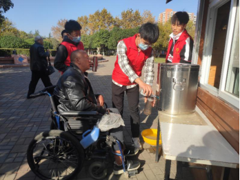 下午一点,志愿者们到达鹰城广场与小木屋负责人进行工作交接。为服务广大市民,给环卫工作者送上温暖,志愿者们为保温壶装满了热水,打扫了小木屋的周边卫生,帮助环卫工人清扫道路,与小木屋的老人们耐心交谈,为环卫工人和行动不便的老人们送上热水,在深秋之际送上一份关怀,用实际行动诠释了志愿者服务精神。