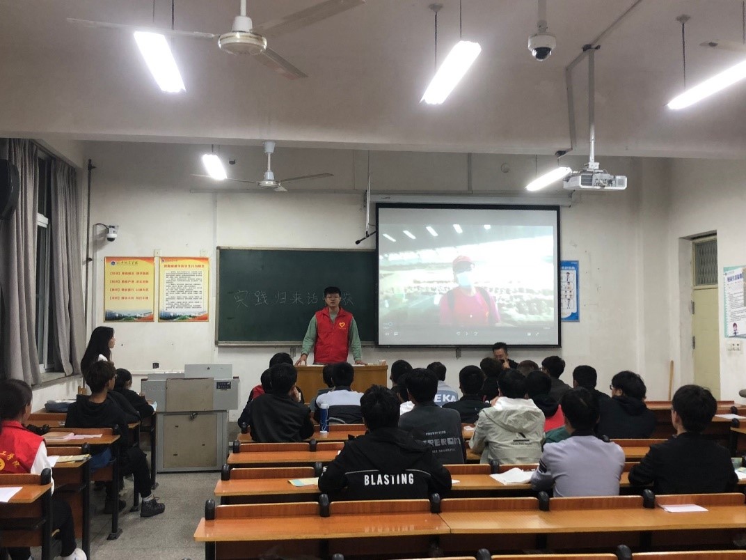 晚上七点,由各班军训联络员首先开展了“实践归来话收获”主题团日活动,活动开始,三下乡优秀团队代表上台进行演讲,介绍了社会实践的过程,通过播放ppt和视频来展示2020年社会实践的成果,接着邀请各班团员发表并讲述了实践活动过程中的感受,交流分享经验,给大一新生更直观的感受,呼吁每一位同学积极投身于社会实践活动中。