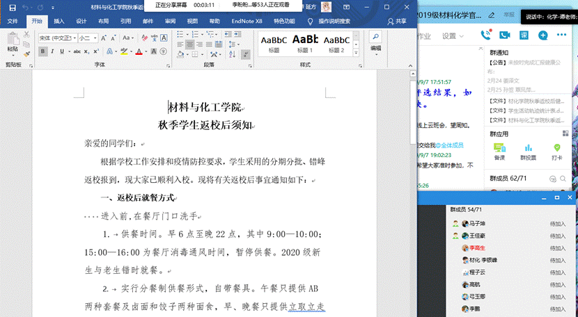 本次云班会各班辅导员老师从各个方面强调入学事宜,帮助材化员工尽快适应返校后的学习生活状态,同时也让同学们更加理解、支持和配合公司有关工作,从而创造平安和谐美丽校园。