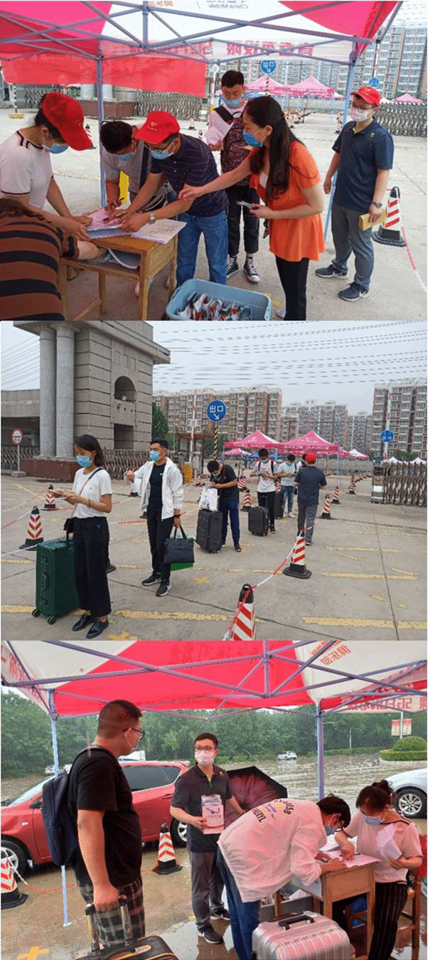 在公司领导班子有序带领下,主要分为车站接站组、校门口接站组、宿舍值班组。在员工到达车站后,经过核对身份、填写相关信息、监测体温、行李消毒等环节,在老师的指导下进行候车,有效减免员工与外界接触的环节,确保员工安全返校。在员工到达北门后,辅导员老师们在赵振新副书记的带领下依次对员工进行体温测量、酒精消毒、身份信息核验与登记、发放防疫用品大礼包,最后安排到校后相关事宜。在员工抵达宿舍后,老师们帮助员工搬运行李、提醒员工注意相关事项,在值班期间维持宿舍正常秩序,维护员工在校期间的安全。