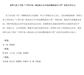 活动前期,各班班长和宣传委员积极配合,鼓励同学们踊跃报名参赛,用画笔描绘出自己心中的最美口罩。参赛作品无一不体现了老员工丰富的想象力和创造力,表达了对抗疫人员的热爱与崇高的敬意。公司团总支对员工提交的作品从内容、美观度等方面进行评选,选拔出十八份优秀作品参与复赛评选。最后,通过微信投票数据、作品内容寓意等各方面进行评判,评选出一等奖两名、二等奖四名、三等奖六名。