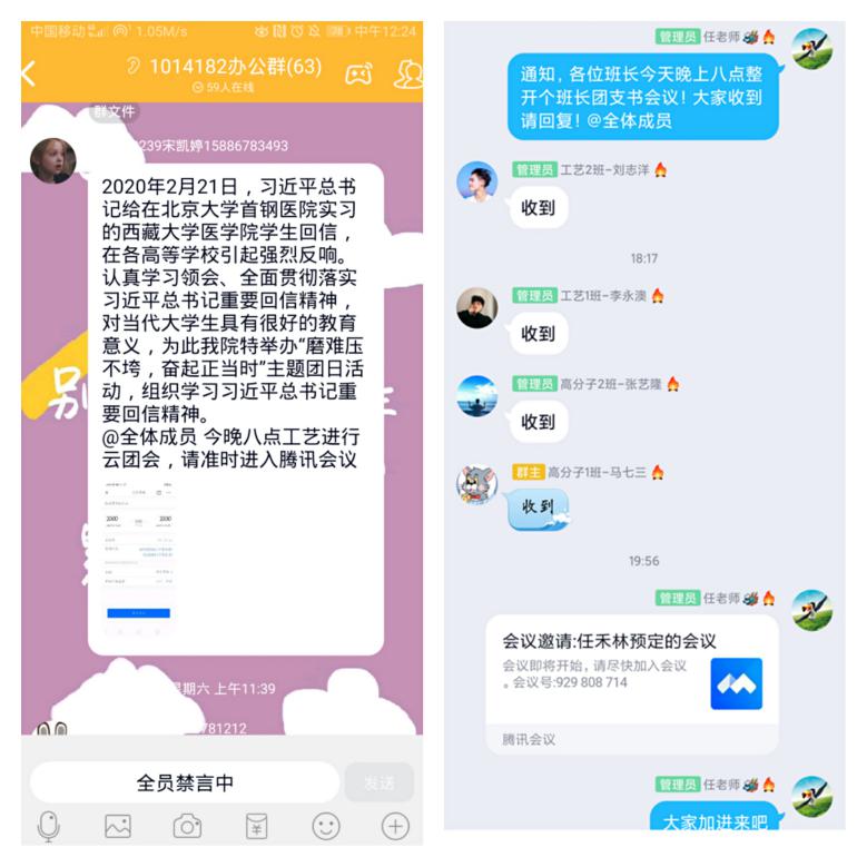 会议中,各班辅导员充分利用云平台带领员工学习了习近平总书记重要回信精神,切实加强理想信念教育,向同学们讲解了更多疫情防控文件、防控故事,宣传科学防疫政策,教育引导广老员工坚定“四个自信”、树牢中国特色社会主义共同理想。同时,辅导员们还叮嘱同学们在家多学习、多运动,自觉做到不信谣、不传谣,一切行动听从公司的统一部署和安排,需要离开居住地的同学一定要提前上报申请,决不能私自出行。