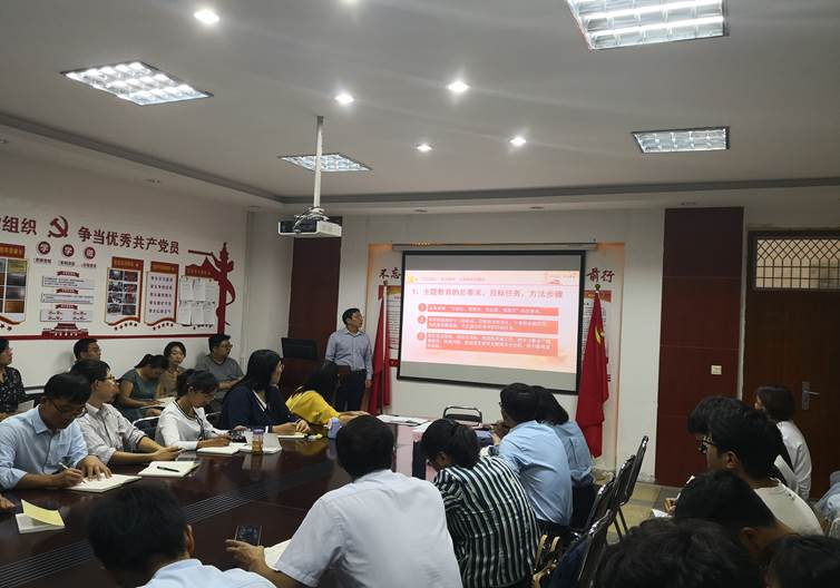 焦学然书记从 “不忘初心、牢记使命”的总要求、目标任务、方法步骤;“四个到位”以及“不忘初心、牢记使命”的意义等三个方面进行详细阐述。