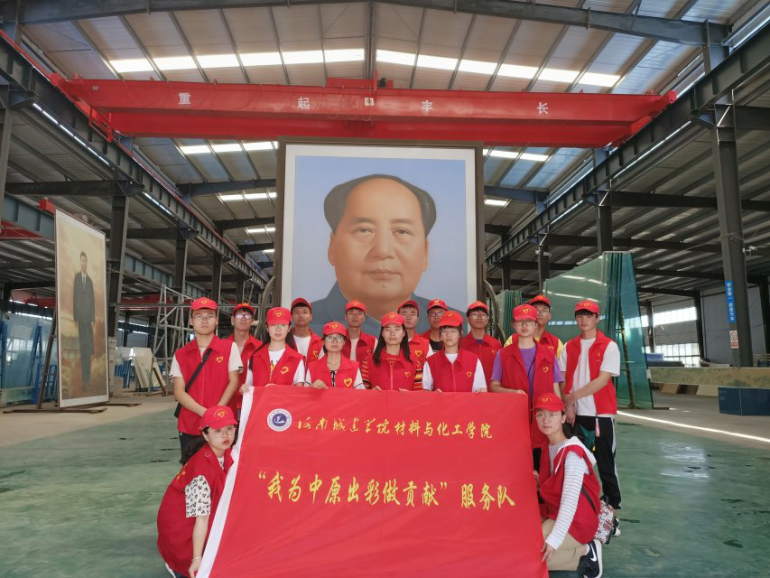 进入厂区,毛泽东主席的肖像映入眼帘,经负责人介绍得知该肖像是由3D打印技术制成的瓷板画。由此作为切入点,厂区负责人为大家介绍了工厂的3D打印机、钢化炉、以及引进的一系列恒温保护设备。赵振新副书记对工厂生产的部分产品进行了分析,发现“大博瓷画”所运用的3D打印技术与在校内所学习的3D打印技术并不相同,在与厂区负责人进行了深入的交流后对志愿者们进行专业普及并教育志愿者们学会将所学的理论知识与实践相结合,积极投身于祖国文化建设的洪流中,为中华文化崛起尽一份绵薄之力。