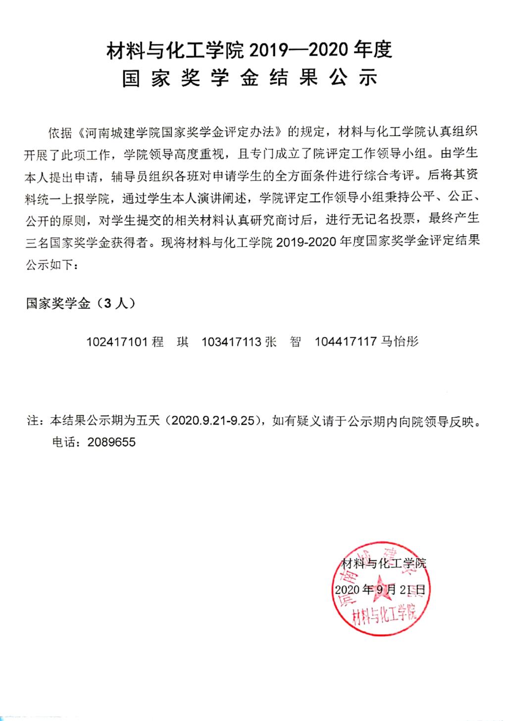 beats365中文官网2019-2020年度国家奖学金结果公示